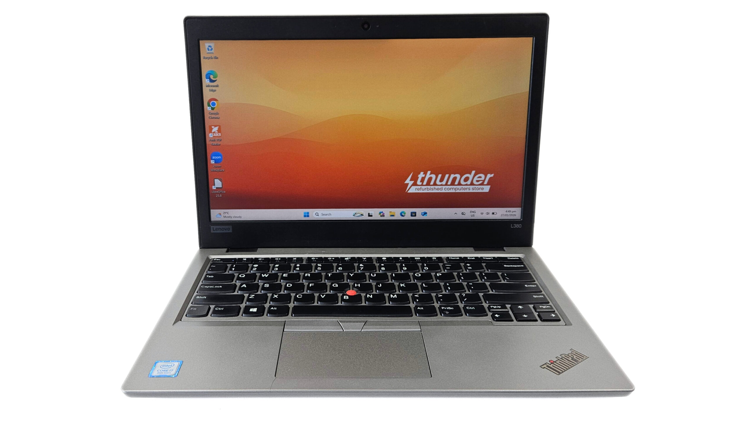 * Windows 11 Pro, Google Chrome, Foxit PDF Reader, Zoom, LibreOffice (LibreOffice can open and save documents in the Microsoft Office file formats).