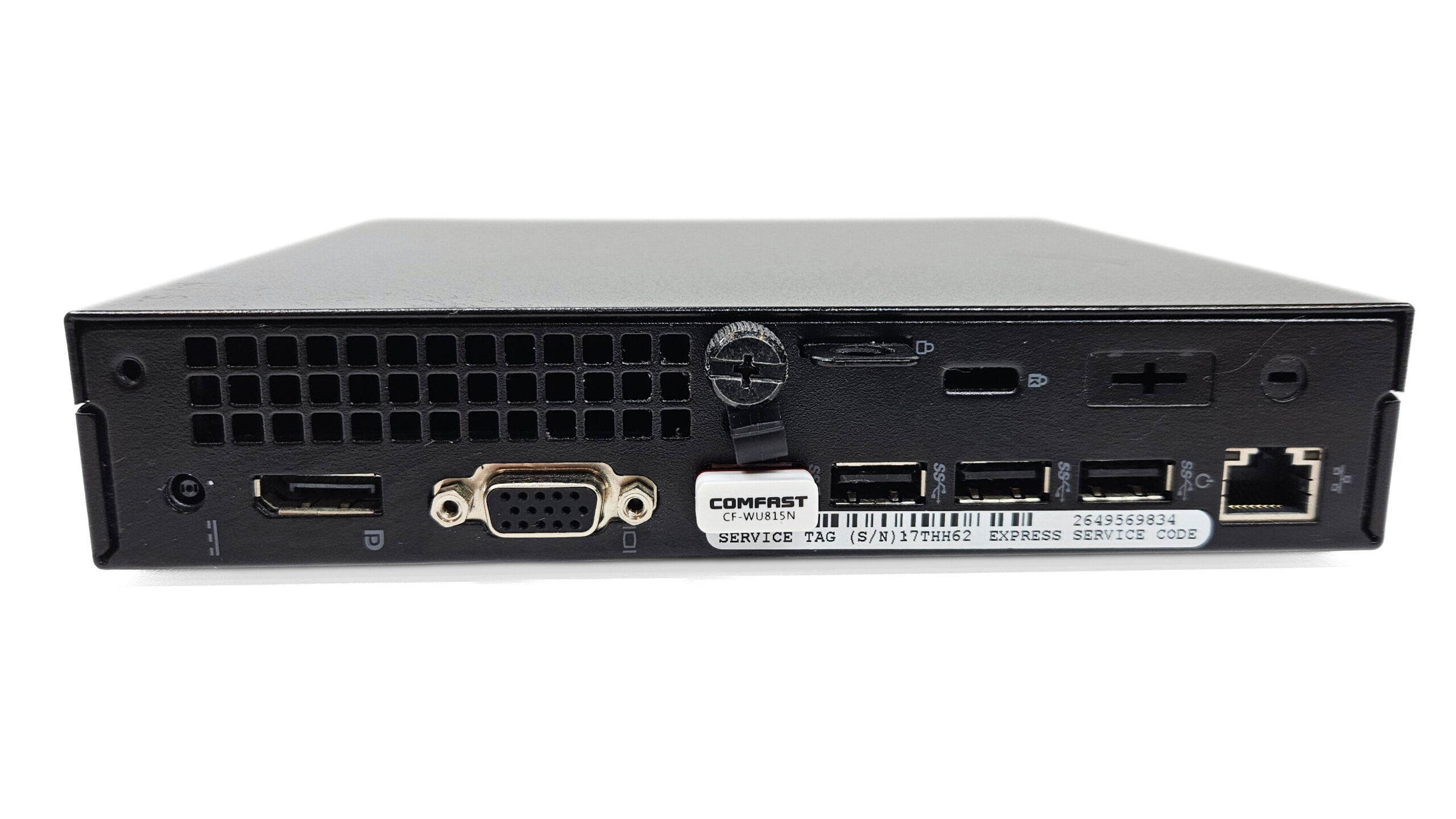 * WiFi (USB dongle), USB 3.0, DisplayPort, VGA, Ethernet (RJ-45)